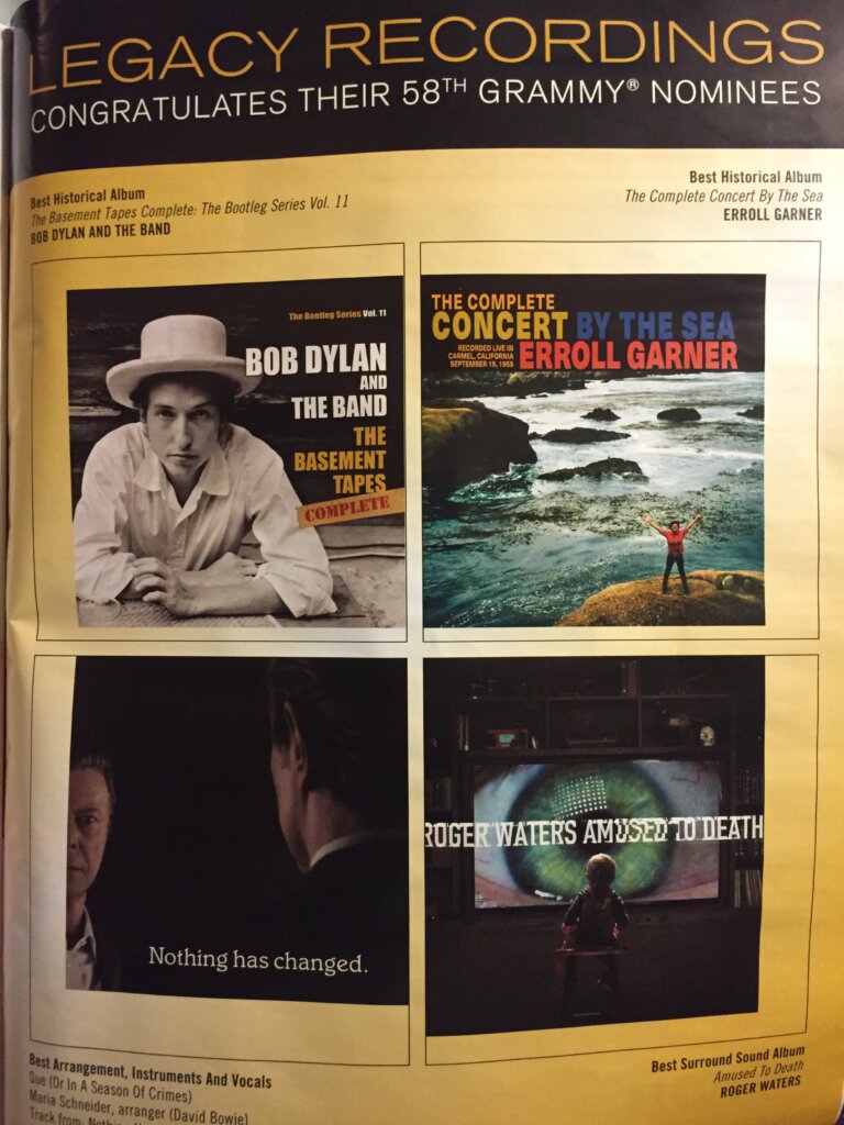 “The GRAMMY Awards celebrate what is considered to be the best contemporary music issued in the last year … .Only one key category, Best Historical Album, gazes back to celebrate the best resurrected recordings. Each year the nominees span genres and decades, homing in on moments in history that either altered its course or captured particularly unique frequencies. “The Concert By the Sea” …record became a touchstone of mid-’50s jazz, and helped pave the way for a series of hit jazz records by artists including Miles Davis, Ahmad Jamal and Dave Brubeck. The new reissue for the first time presents the entire concert, rather than just the highlights that came out on the original album.”