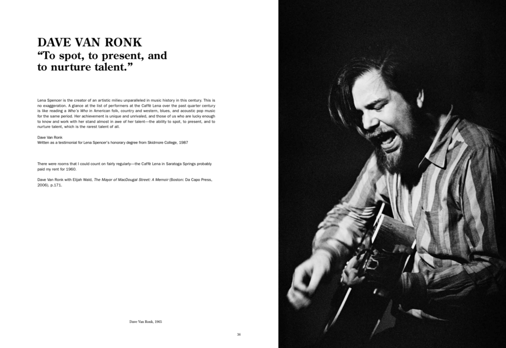 “A new three-disc collection…contextualizes the world of Van Ronk….placing him alongside notable folk icons including Jean Ritchie, Mike Seeger, Utah Phillips and Ramblin’ Jack Elliott as well as Woodstock-based singer-songwriters like Happy & Artie Traum. Lena’s Saratoga Springs locale is almost 200 miles upstate from Greenwich Village, but the folk community that performed there still comes shining through.”